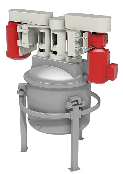 Our product range includes everything from spare parts to completely new mixers as standard dissolvers or as three-shaft mixers for larger container preparations. Single wall or double-walled containers as well as load cells, PLC control and flap valves for feeding with raw materials are optionally available.